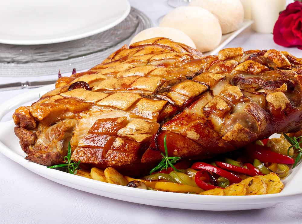 Paleta de cerdo asada con piel crujiente