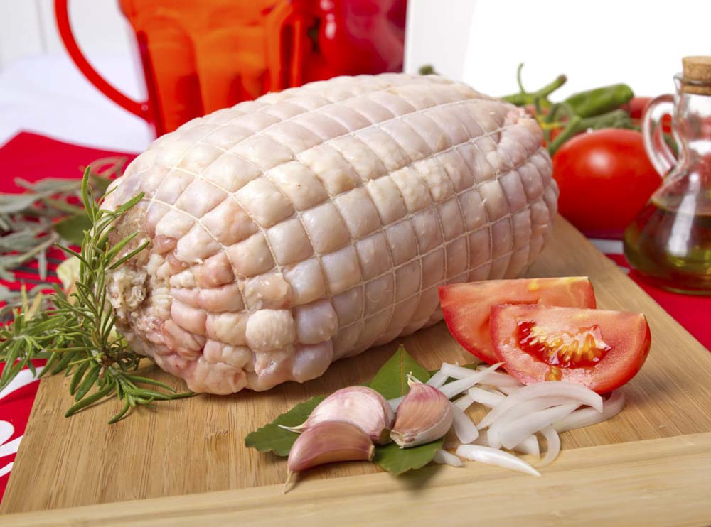 Pieza 2,4 Kg (Aprox.) Relleno: carne de cerdo y ternera aliñada, huevo duro y taquitos de jamón ENCARGAR CON 4 DÍAS DE ANTELACIÓN