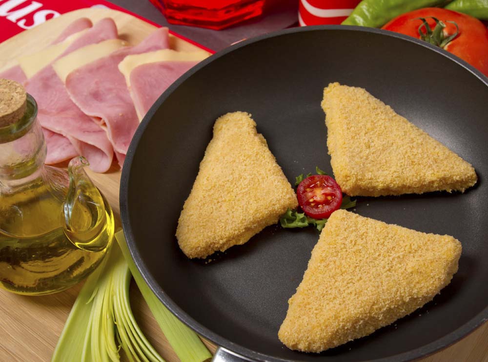 Fiambre de york relleno con queso y bacon. ALÉRGENOS: GLUTEN, HARINA DE ALTRAMUZ, QUESO, TRAZAS DE LECHE, PROTEÍNAS DE LECHE Y HUEVO.